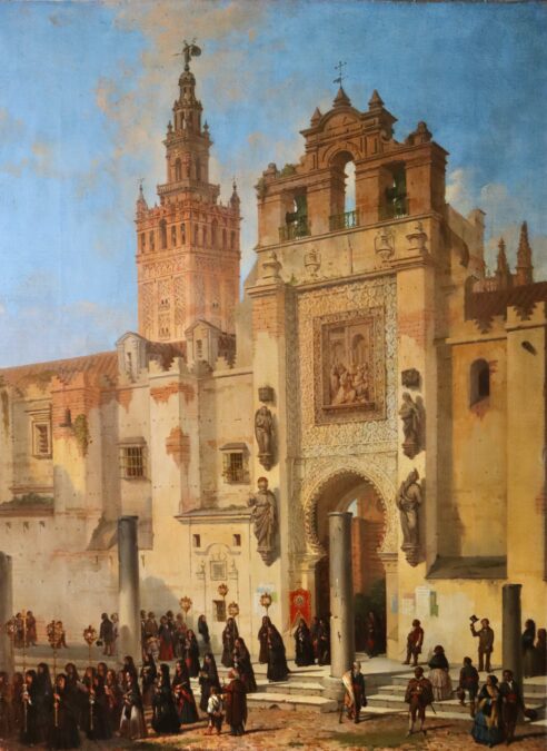 Accord-cadre pour la conservation-restauration d'une partie de la collection de peintures dans l'équipe inter-régionale mandatée par Sandrine Jadot-Pivet. : "La procession de Séville" de Joaquin Becquer, 1853