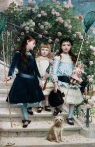 Conservation-restauration d'une huile sur toile en collaboration avec C. Morin : "Départ à la chasse" de Jules Aviat, fin XIXe siècle